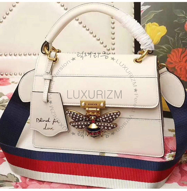 [스페셜오더]GUCCI-476541 9193 구찌 화이트 가죽 Queen Margaret 스몰 탑 핸들 백