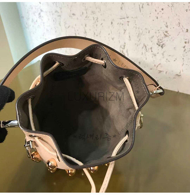 스몰 몬트레조 버킷 가방. 드로스트링 잠금장치와 Fendi 로고 모양의 메탈