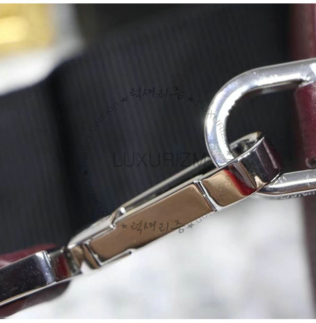 탈착과 길이 조절이 가능한 그레인 송아지 가죽 마감 나일론 스트랩.