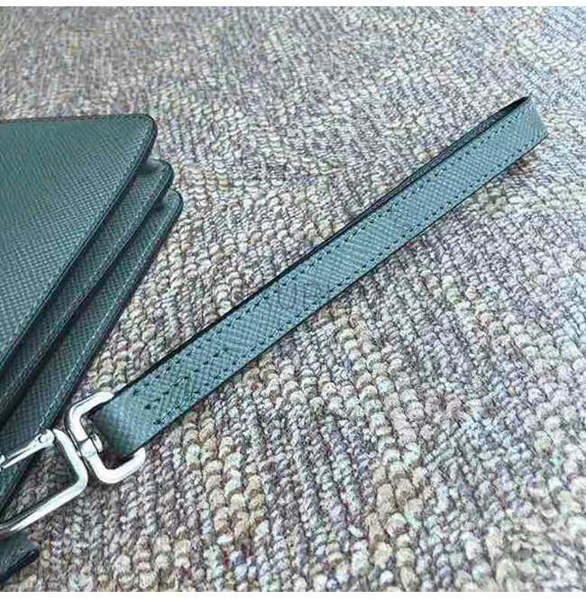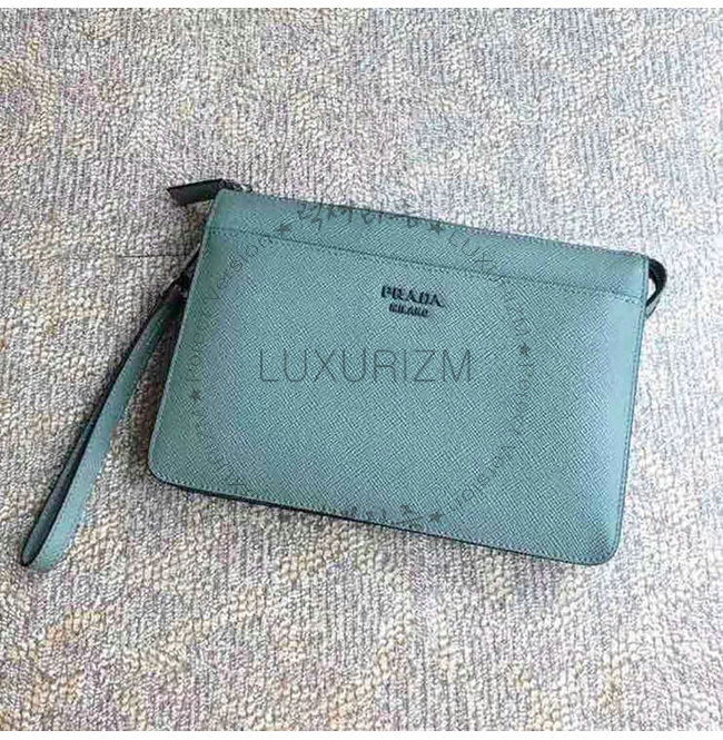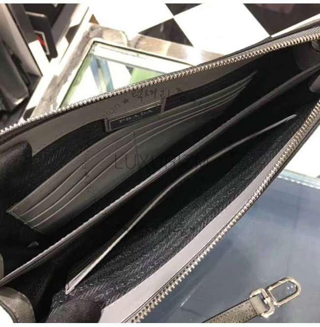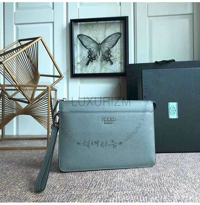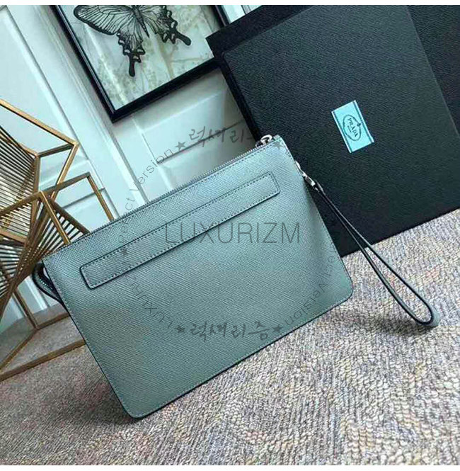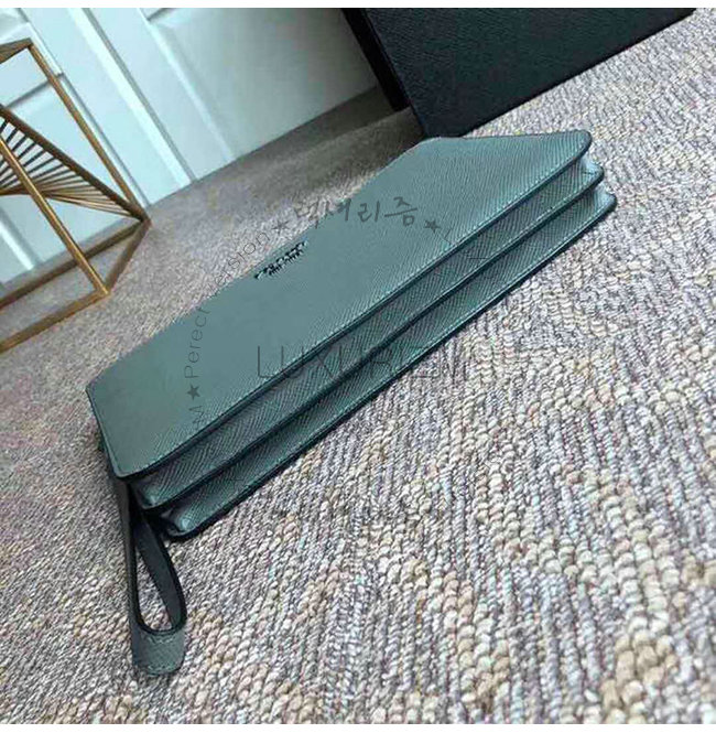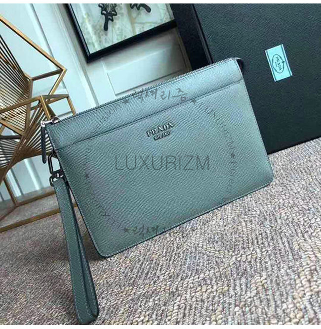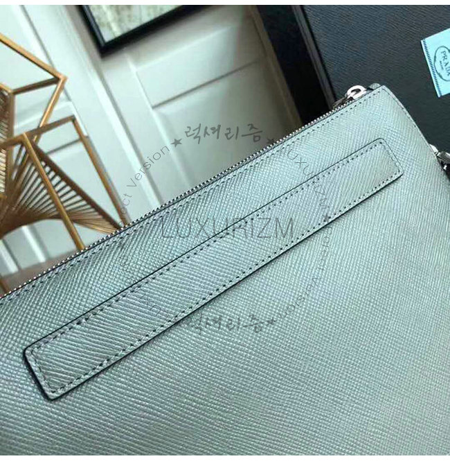 [스페셜오더]PRADA-2VF019 프라다 사피아노 가죽 메탈 레터링 로고 그레이 파우치