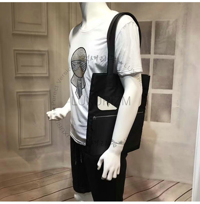 [스페셜오더]FENDI-7VA432 펜디 나일론 페브릭 백 버그 아이 장식 블랙 토트백