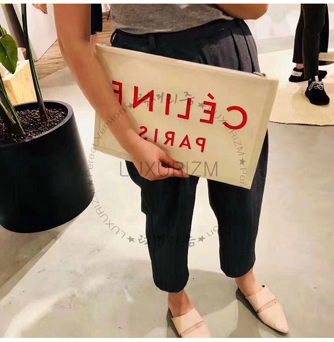 [스페셜오더]CELINE-10A962 셀린느 텍스타일 레드 로고 라지 파우치