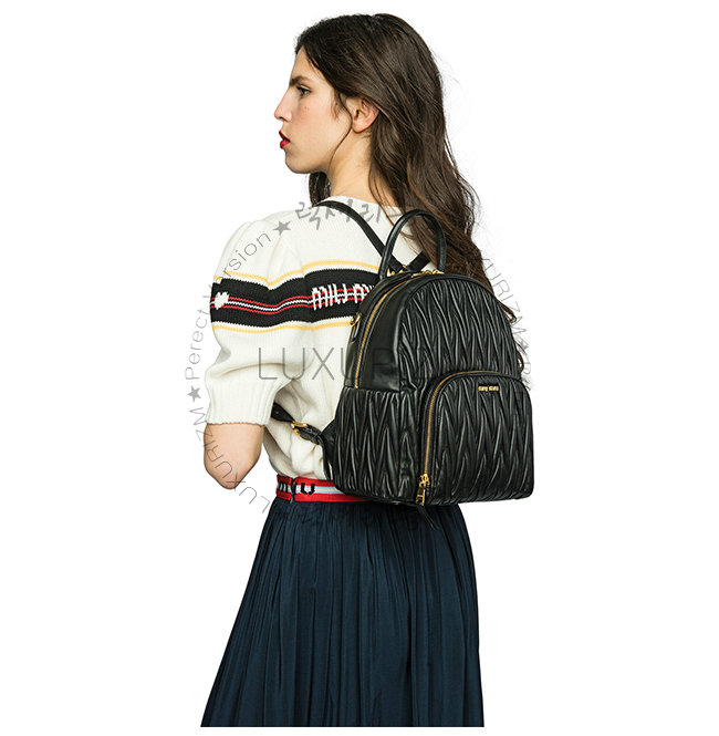 [스페셜오더]MIUMIU-5BZ022 미우미우 블랙 마틀라세 가죽 백팩