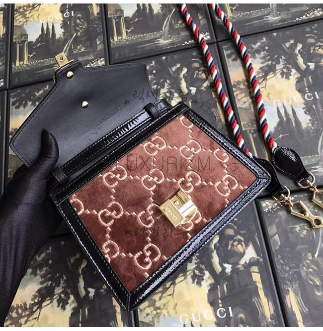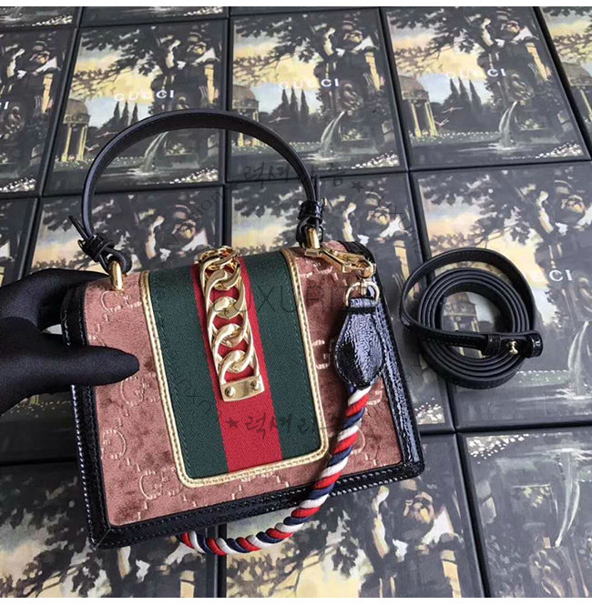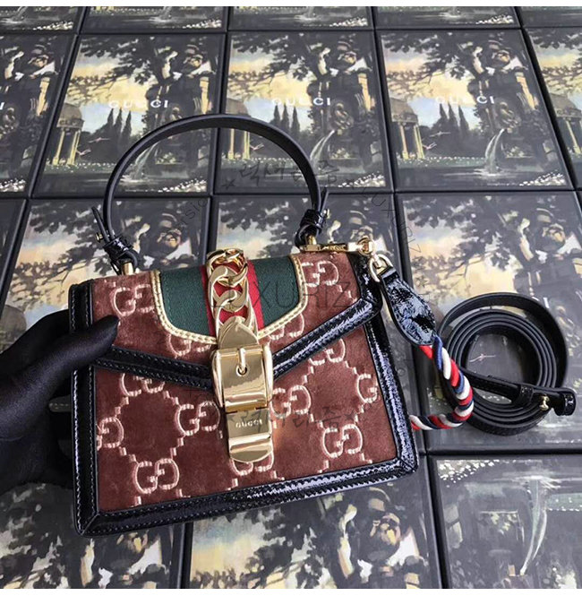 [스페셜오더]GUCCI-470270 2068 구찌 Sylvie 브라운 GG 벨벳 미니 백