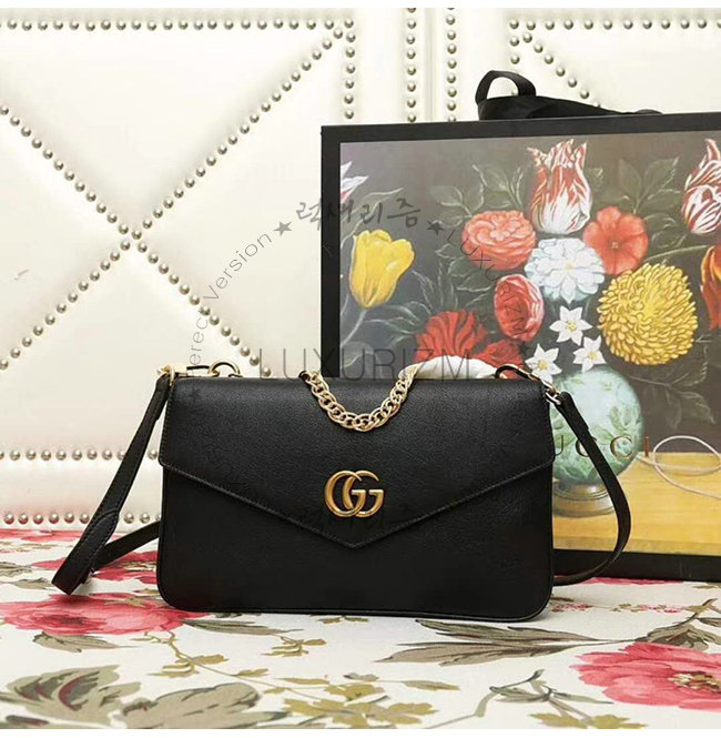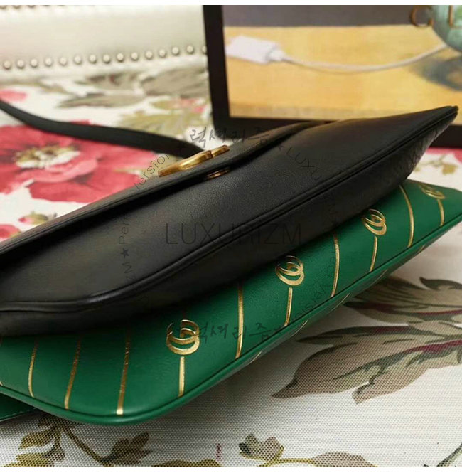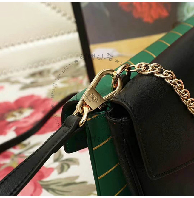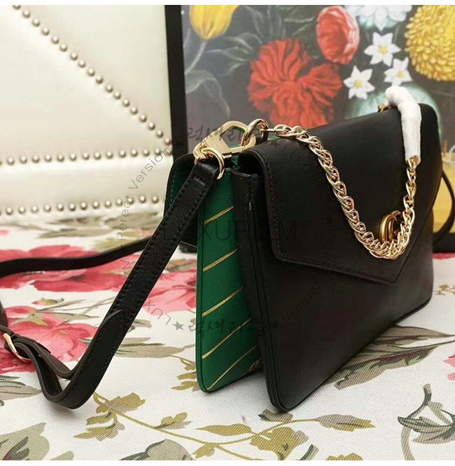 [스페셜오더]GUCCI-524822 1082 구찌 블랙 그린 가죽 더블 숄더백