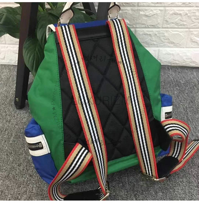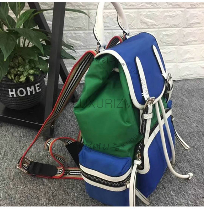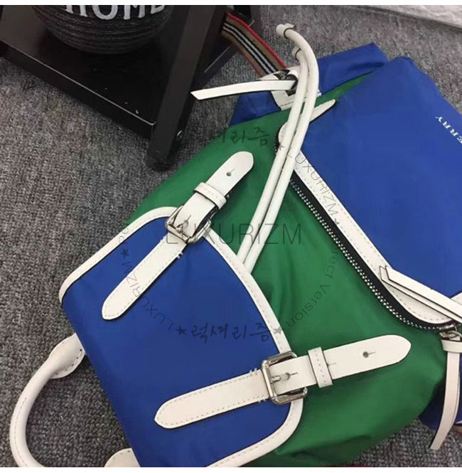 [스페셜오더]BURBERRY-40765121 버버리 미디엄 블루 그린 블록 나일론 가죽 럭색
