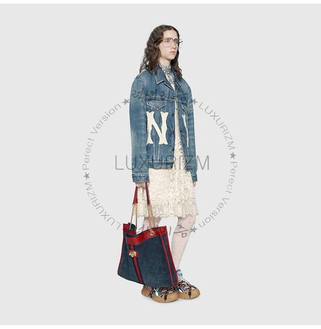 [스페셜오더]GUCCI-537219 4065 구찌 다크 블루 스웨이드 가죽 타이거 헤드 라지 토트백
