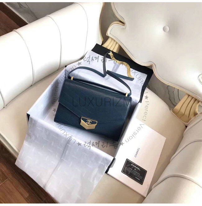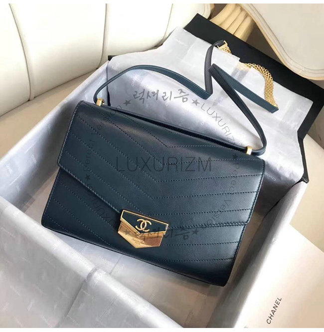[스페셜오더]CHANEL-A57491 샤넬 다크 터키쉬 블루 카프스킨 골드메탈 미디엄 플랩백