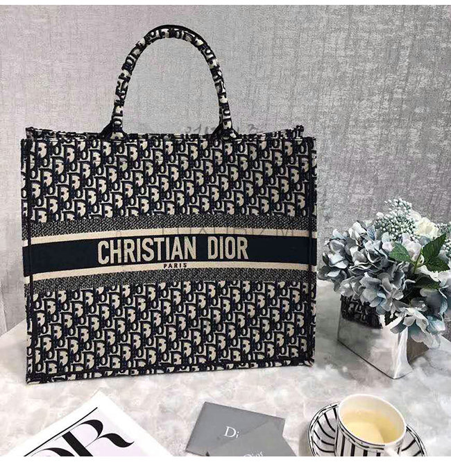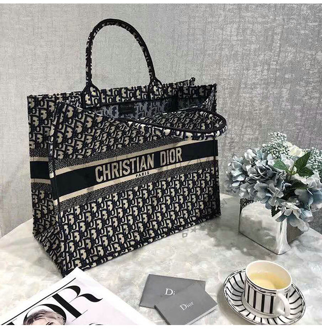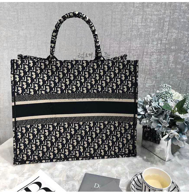 오블리크 디올 로고 자수 패브릭 디올 북 토트 백
