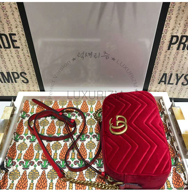 [스페셜오더]GUCCI-447632 6433 구찌 GG Marmont 레드 벨벳 스몰 숄더 백
