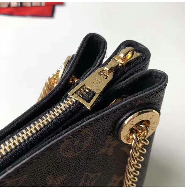 모노그램 캔버스와 결을 살린 송아지 가죽, 골드 마감 슬라이딩 체인이 어우러진