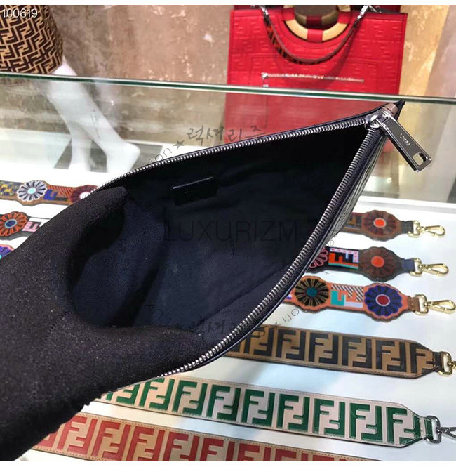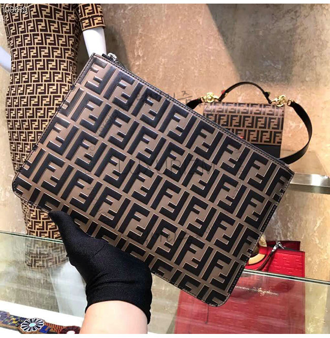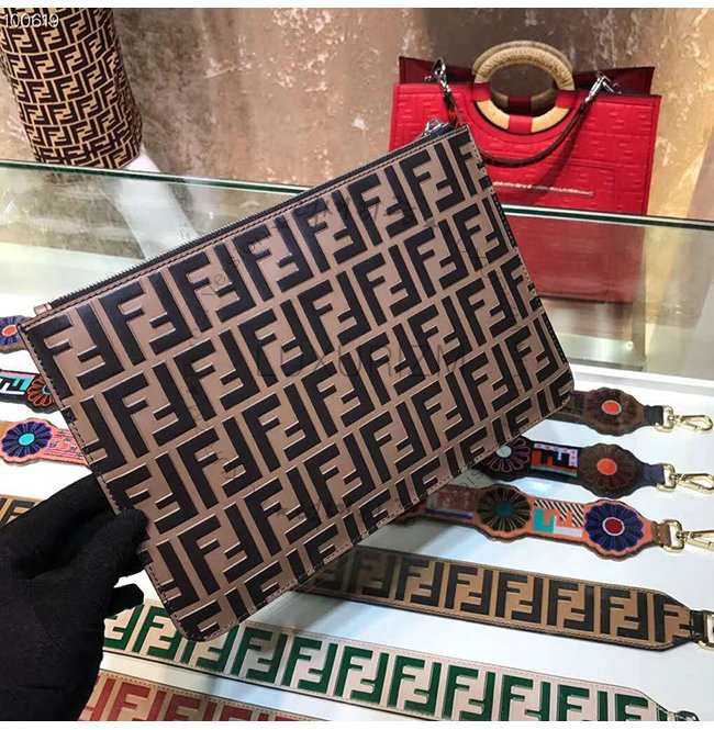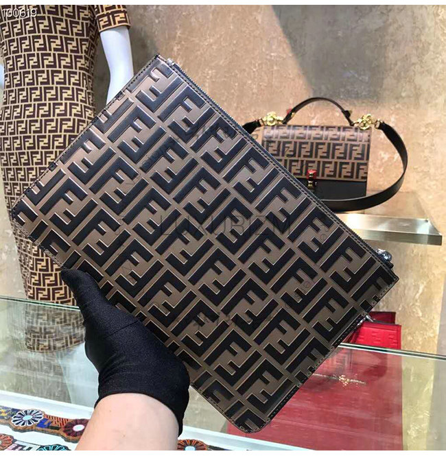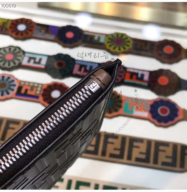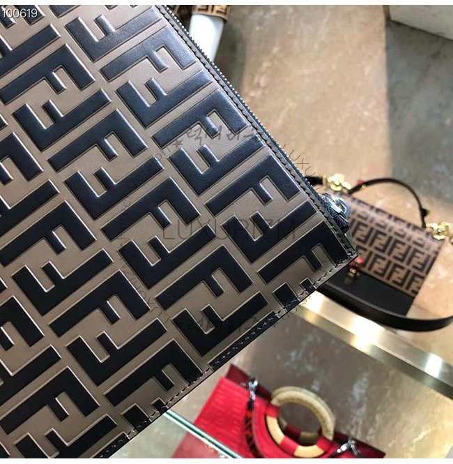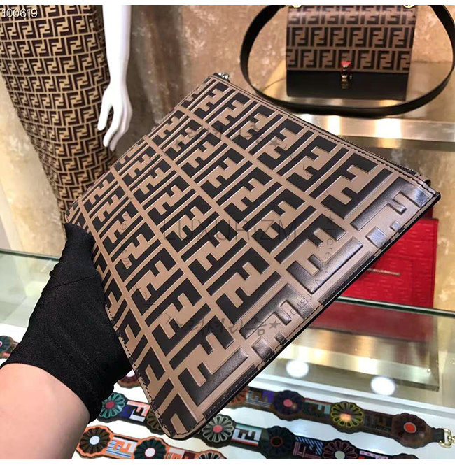 [스페셜오더]FENDI-7N0078 펜디 브라운 송아지 가죽 더블 F 로고 엠보싱 파우치