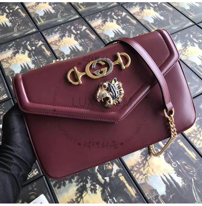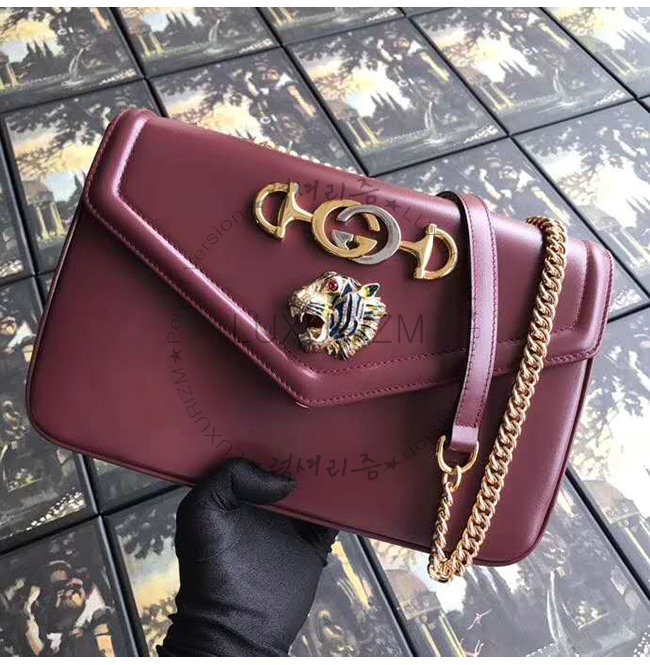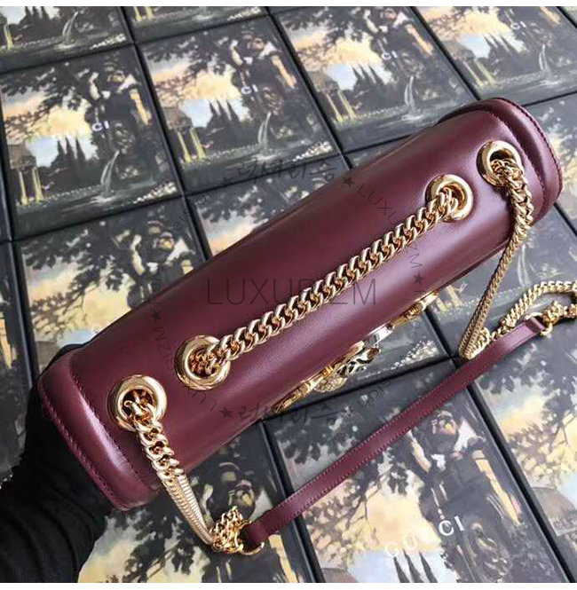 [스페셜오더]GUCCI-537241 6664 구찌 버건디 가죽 타이거 헤드 디테일 미디엄 숄더백