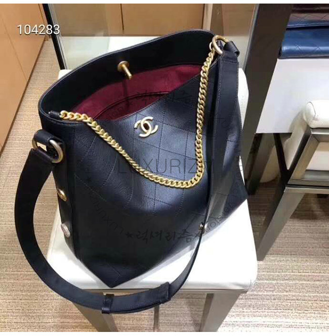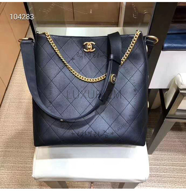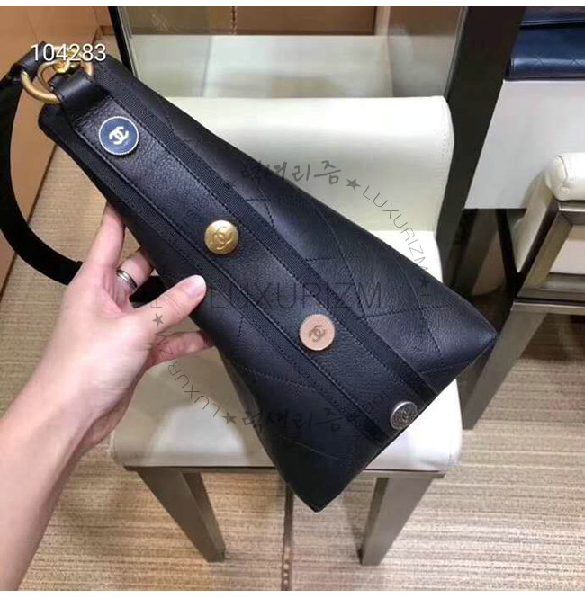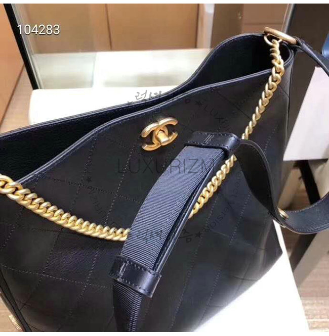 [스페셜오더]CHANEL-A57576 샤넬 블랙 카프스킨 그로그랭 골드메탈 호보 핸드백