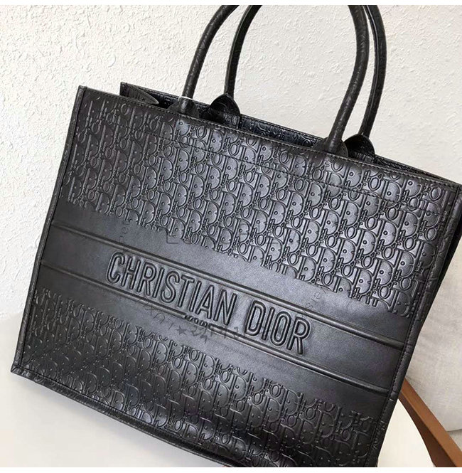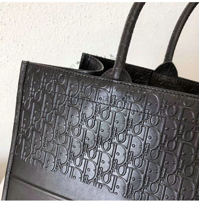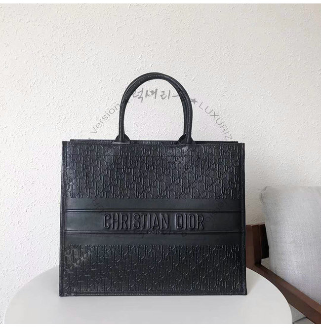 Dior Oblique 엠보싱 장식 블랙 스무스 송아지 가죽 Dior Book Tote 백.