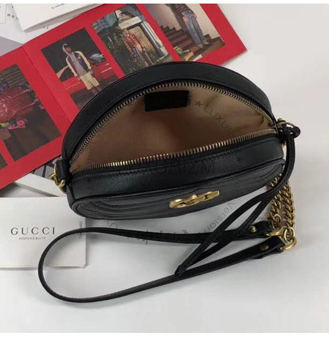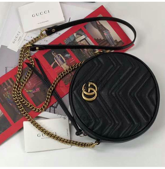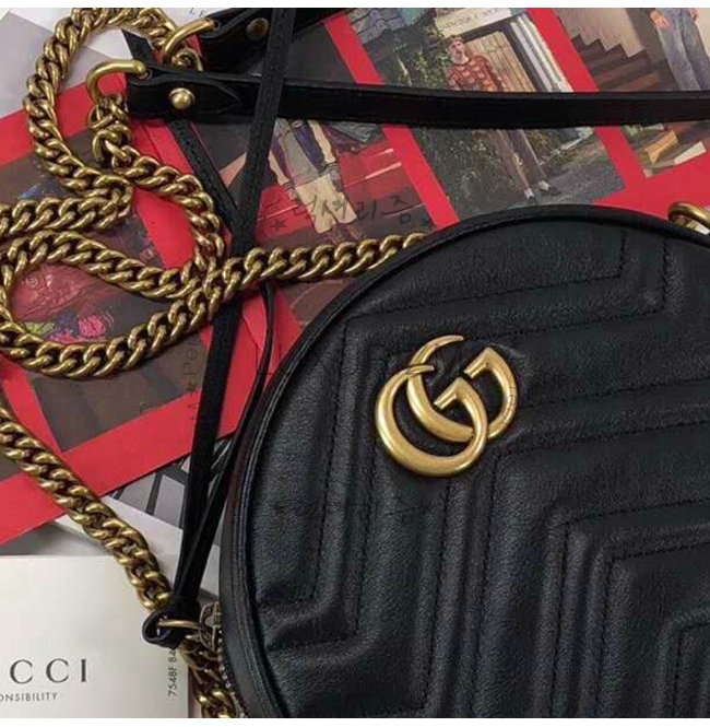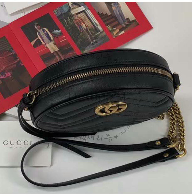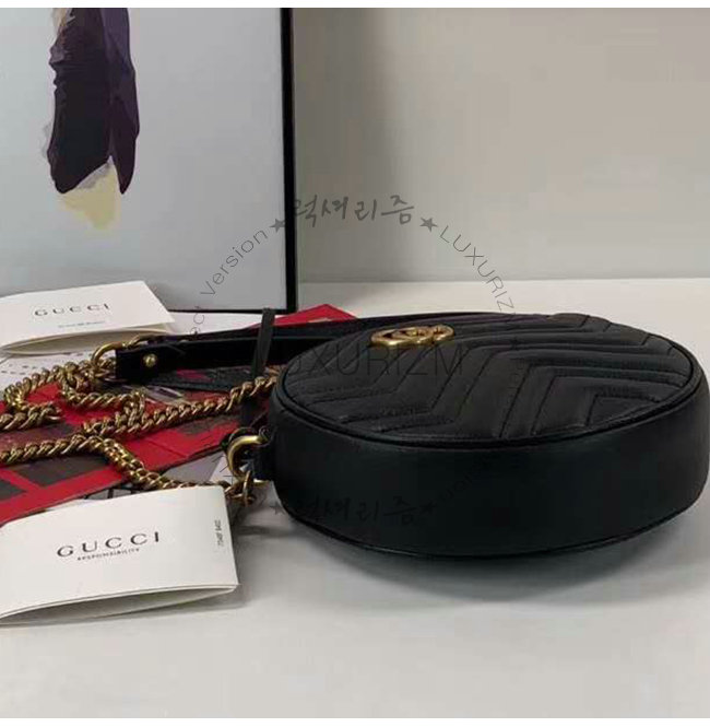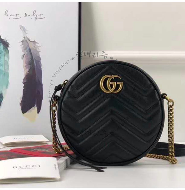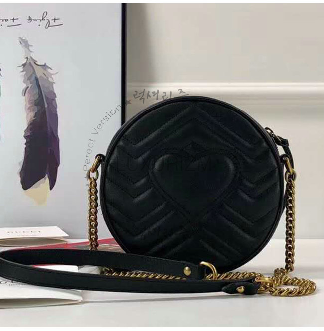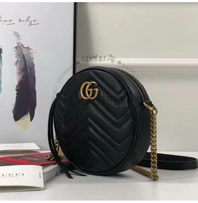 [스페셜오더]GUCCI-550154 1000 구찌 GG 마몽 블랙 마틀라세 쉐브론 가죽 미니 라운드 숄더백