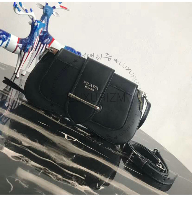 [스페셜오더]PRADA-1BD168 프라다 블랙 송아지 가죽 Sidonie 플랩 숄더백