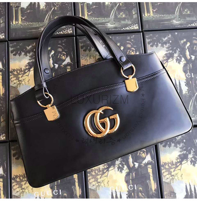 [스페셜오더]GUCCI-550130 1000 구찌 알리 블랙 가죽 라지 탑 핸들백