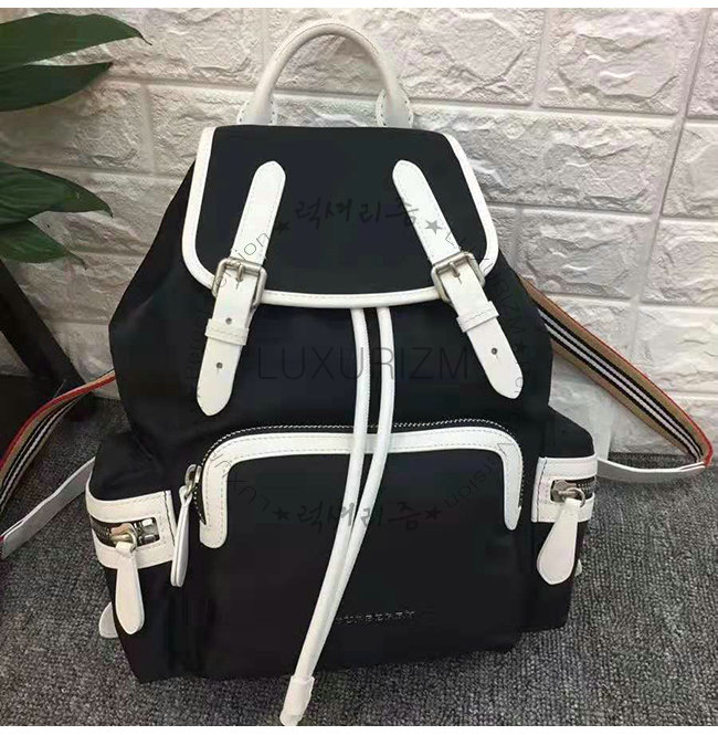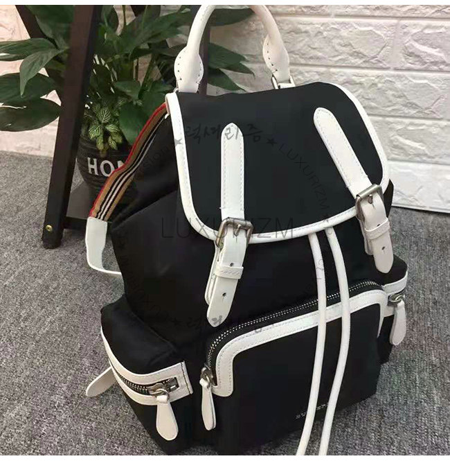 [스페셜오더]BURBERRY-40765121 버버리 미디엄 블랙 블록 나일론 가죽 럭색
