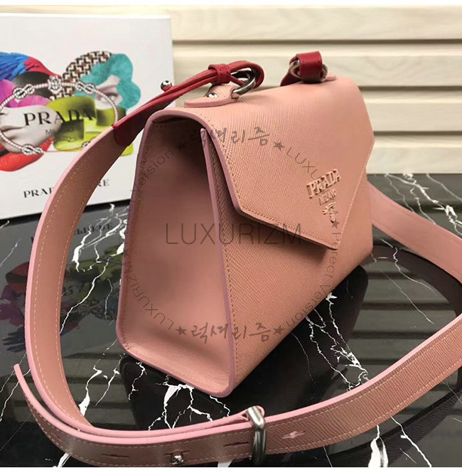 [스페셜오더]PRADA-1BD186 프라다 파우더 핑크 사피아노 가죽 모노크롬 백