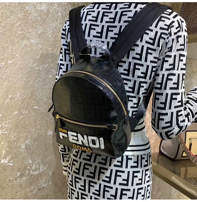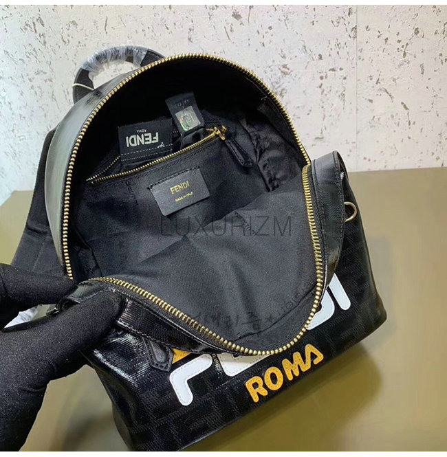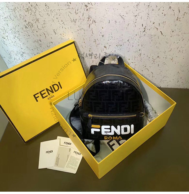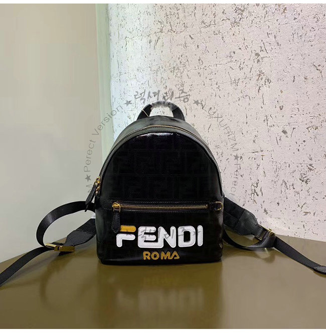 [스페셜오더]FENDI-8BZ036 펜디 블랙 FF 페브릭 Fendi Mania 레터링 장식 스몰 백팩