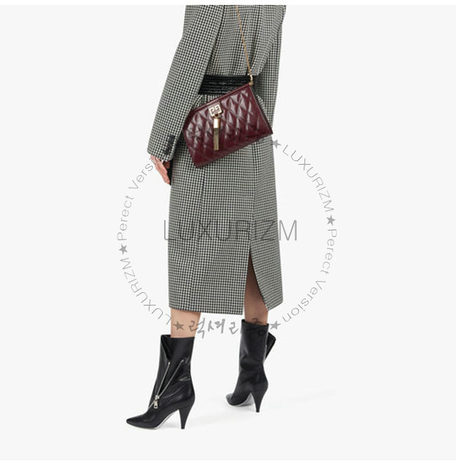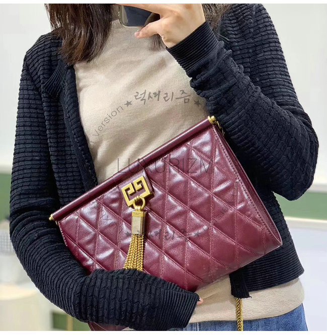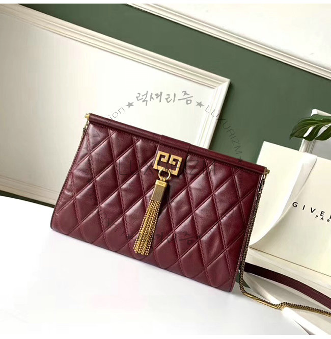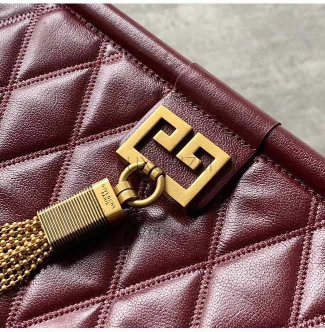 GIVENCHY-BB505B 지방시 버건디 다이아몬드 퀼트 카프스킨 미디엄 GEM 백