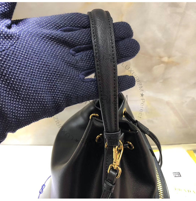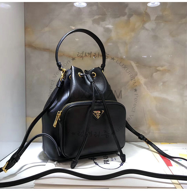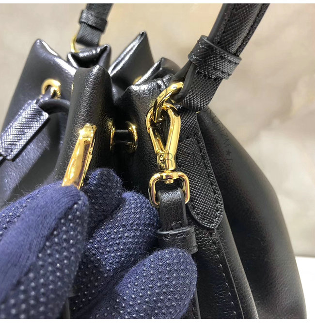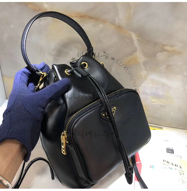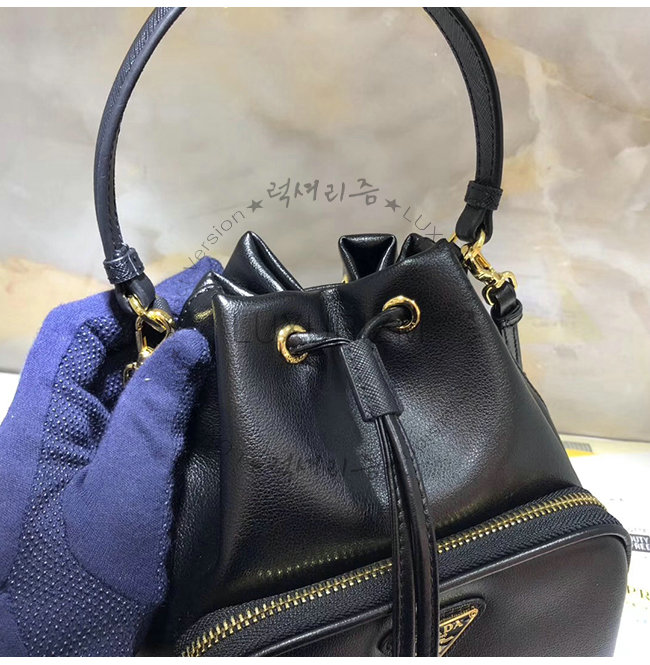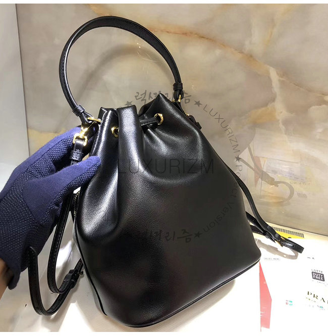 [스페셜오더]PRADA-1BH038 프라다 블랙 송아지 가죽 에나멜 트라이앵글 로고 버킷백