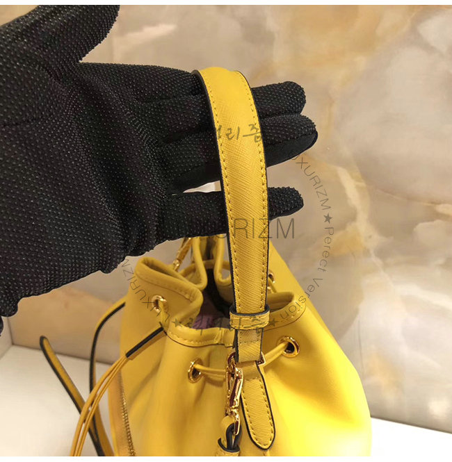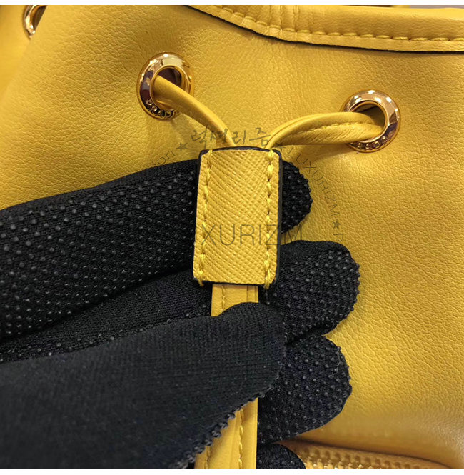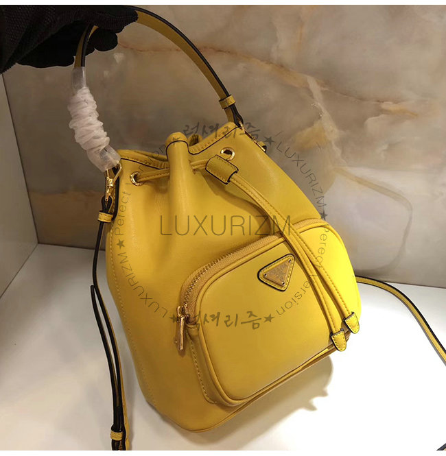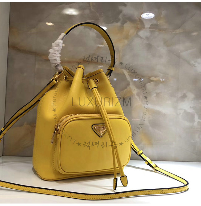 [스페셜오더]PRADA-1BH038 프라다 옐로우 송아지 가죽 에나멜 트라이앵글 로고 버킷백