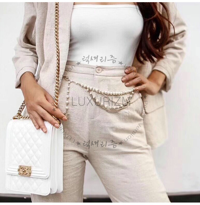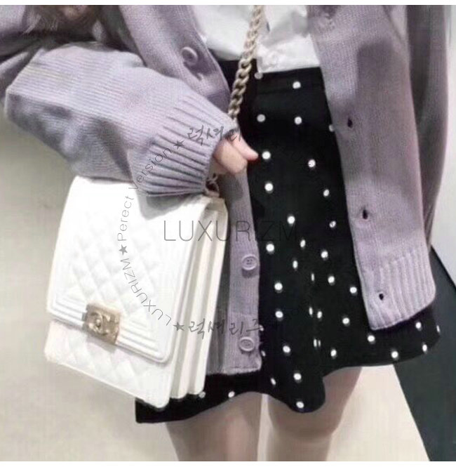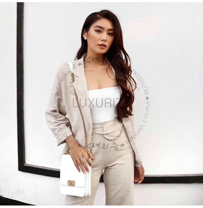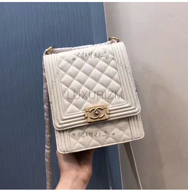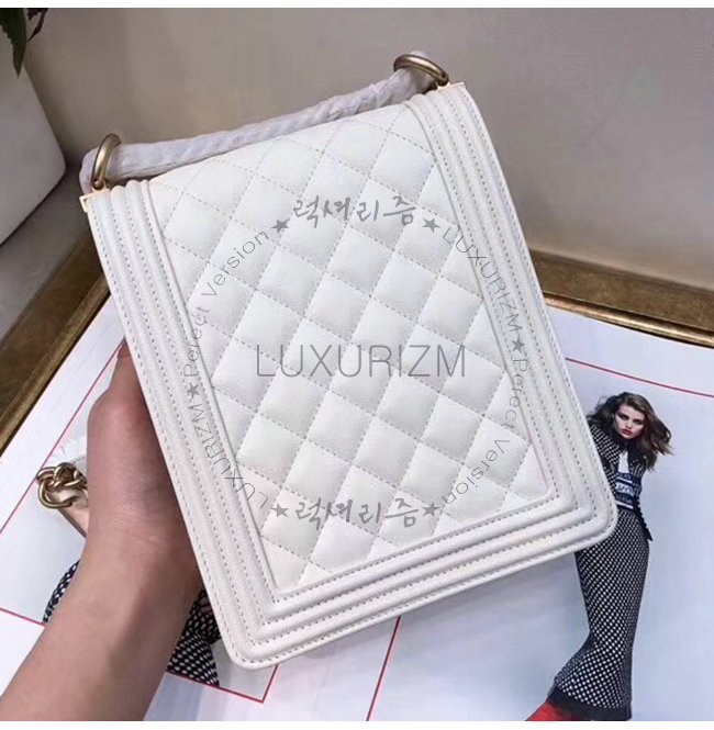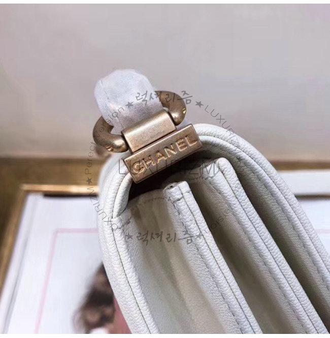 [스페셜오더]CHANEL-AS0130 샤넬 화이트 그레인드 카프스킨 골드메탈 보이 샤넬 플랩백
