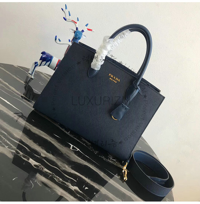 [스페셜오더]PRADA-1BA153 프라다 네이비 사피아노 가죽 라지 비블리오텍 토트백