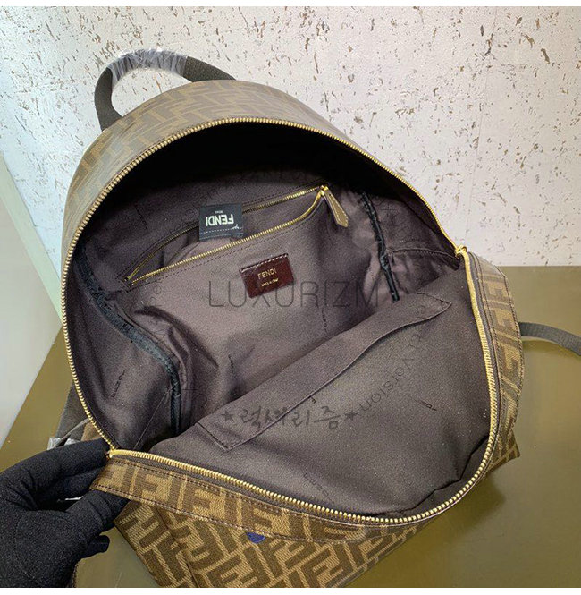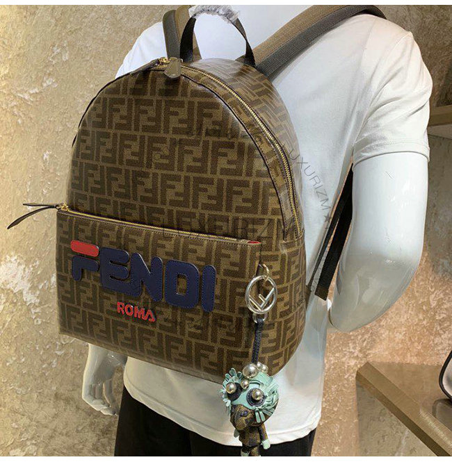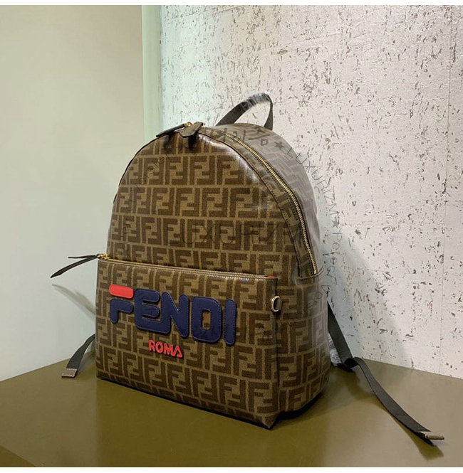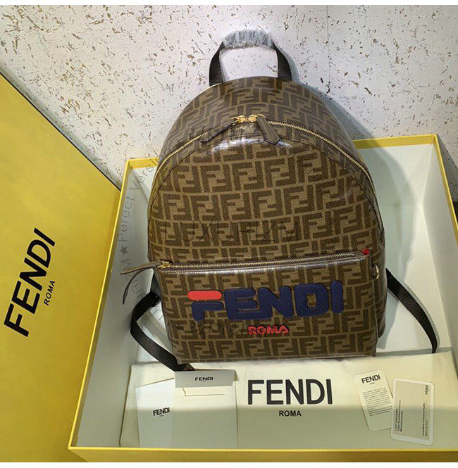 [스페셜오더]FENDI-7VZ042 펜디 브라운 FF 페브릭 Fendi Mania 레터링 장식 백팩