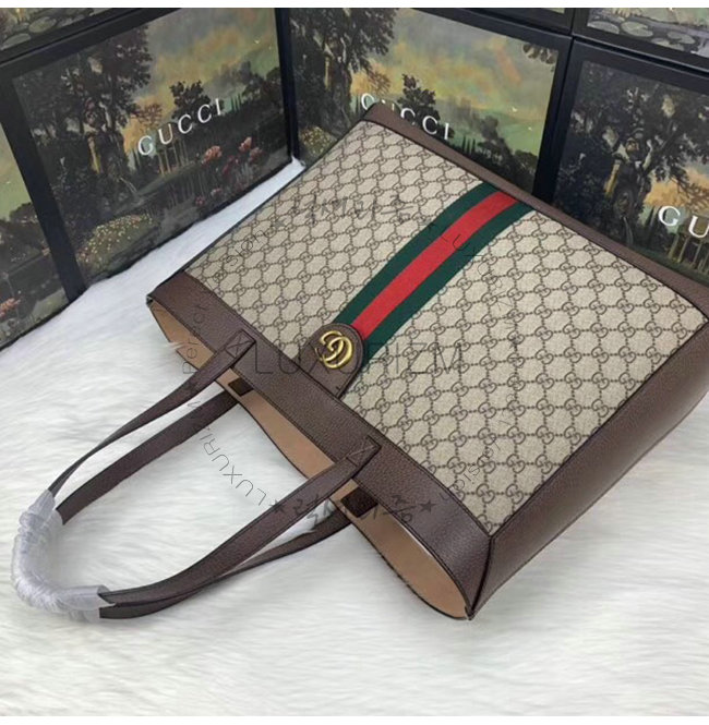 와이드 토트백. 구찌 하우스를 대표하는 클래식한 GG 모티브 및 웹