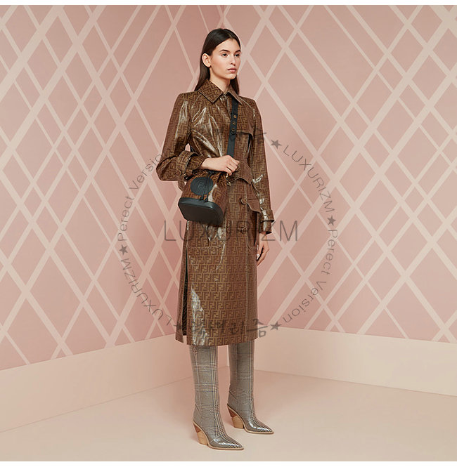 FF 모티프 장식. 펜디 스탬프 패치와 가죽 디테일. 골드 피니싱 메탈웨어.