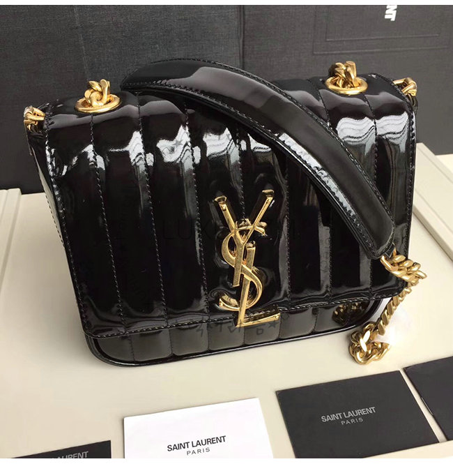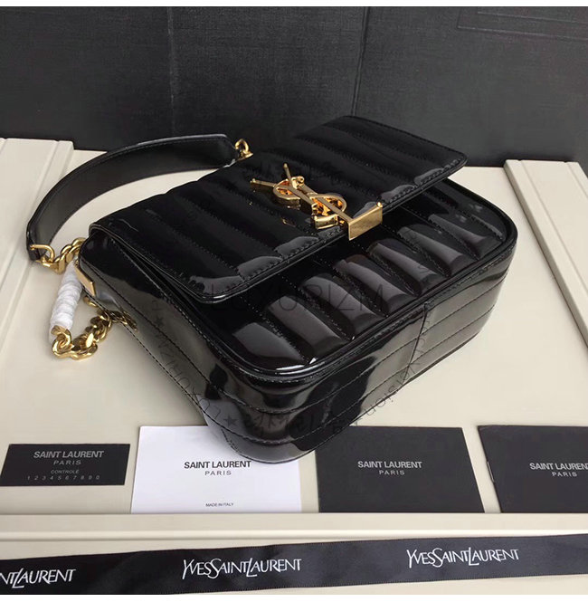 [스페셜오더]SAINT LAURENT-554125 생 로랑 블랙 퀼티드 페이턴트 송아지 가죽 비키 미니 체인백
