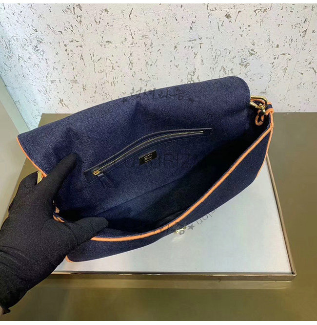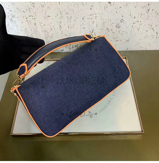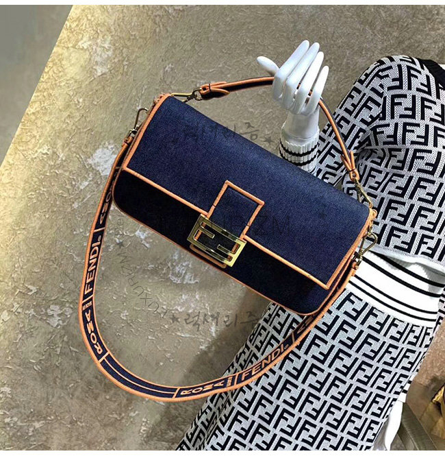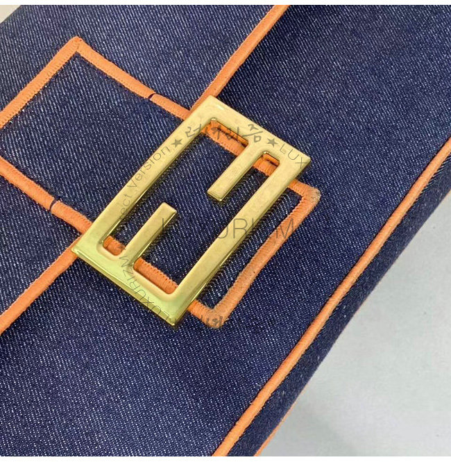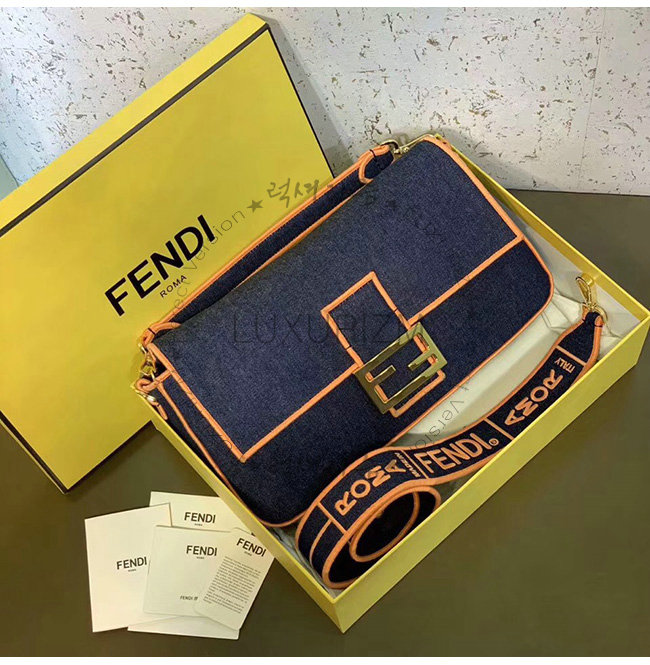 [스페셜오더]FENDI-8BR771 펜디 블루 데님 오렌지 디테일 라지 바게트백