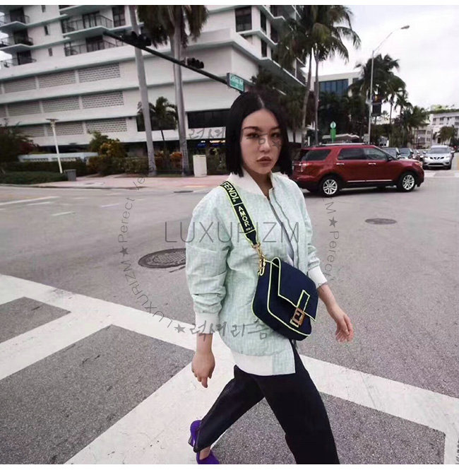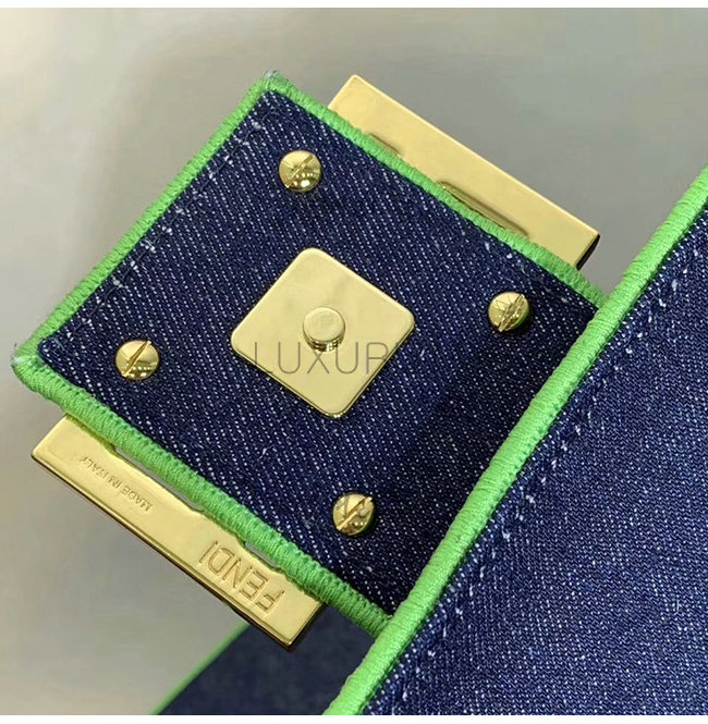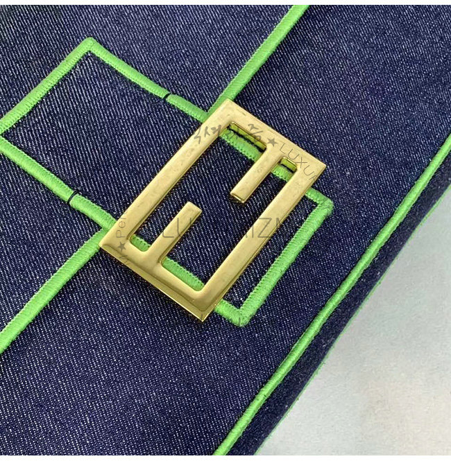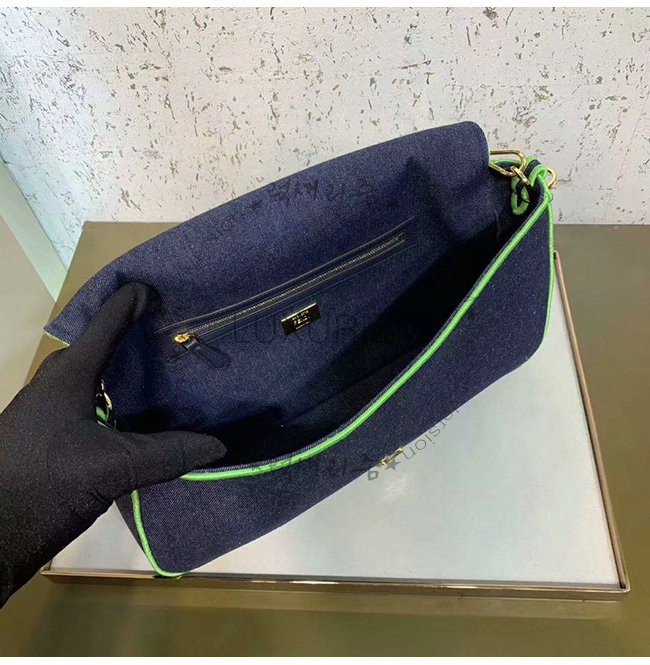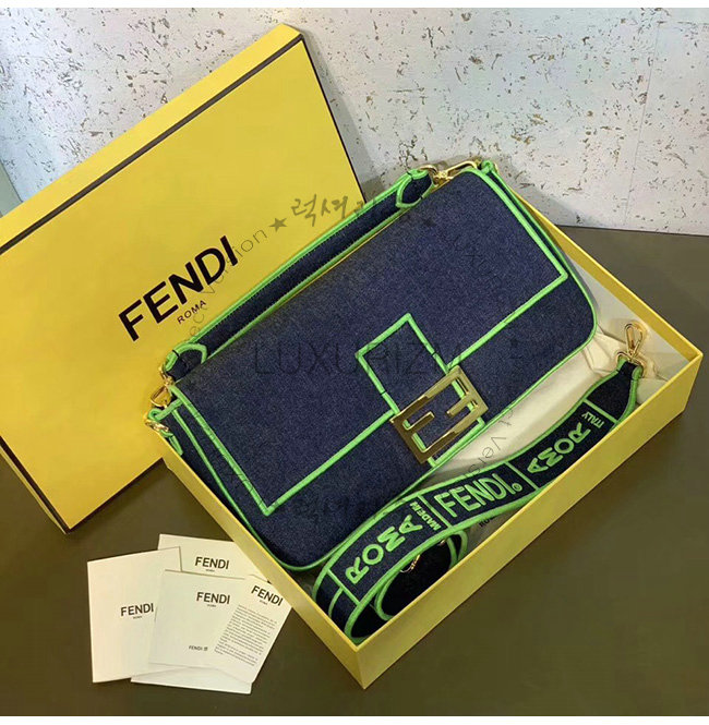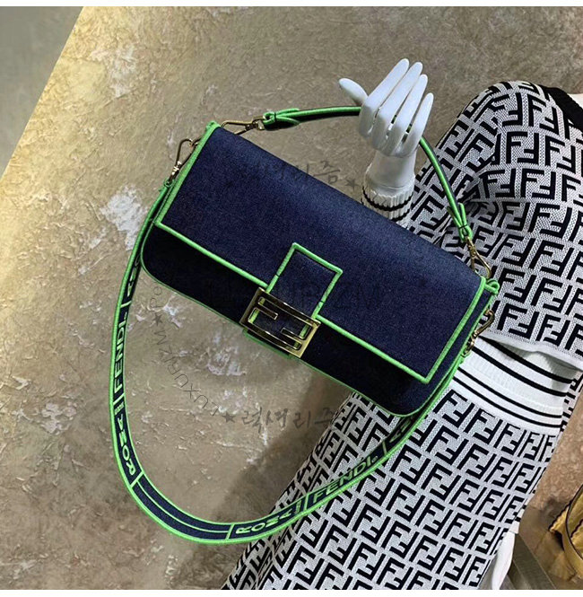 [스페셜오더]FENDI-8BR771 펜디 블루 데님 그린 디테일 라지 바게트백