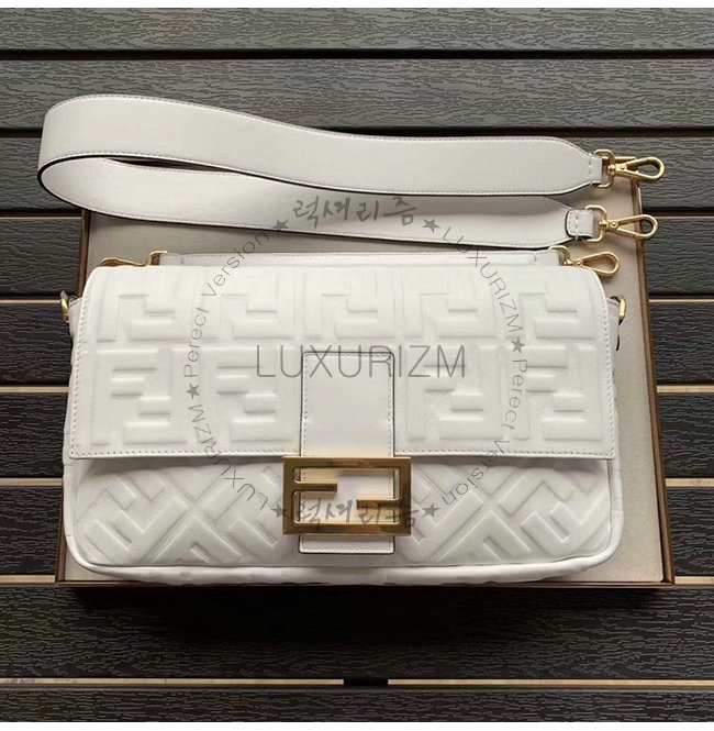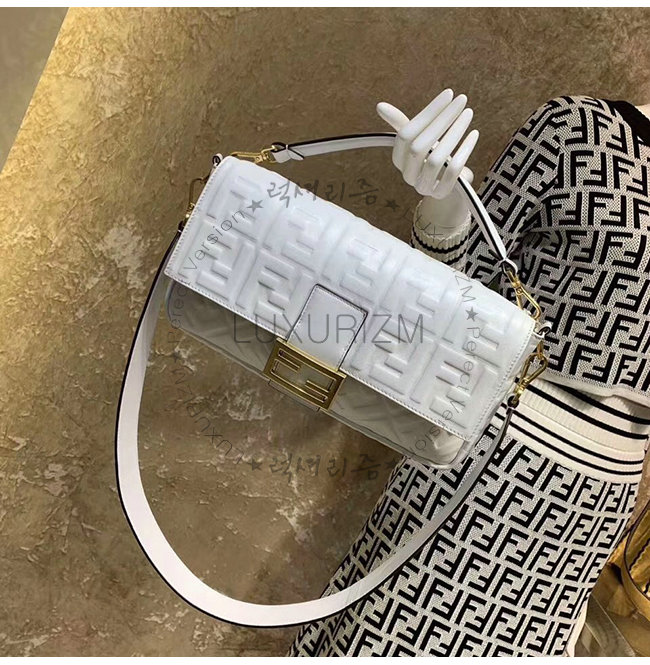 [스페셜오더]FENDI-8BR771 펜디 화이트 더블 F 양가죽 라지 바게트백