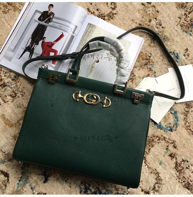 [스페셜오더]GUCCI-564714 3154 구찌 다크그린 스무스 가죽 주미 미디엄 탑 핸들백