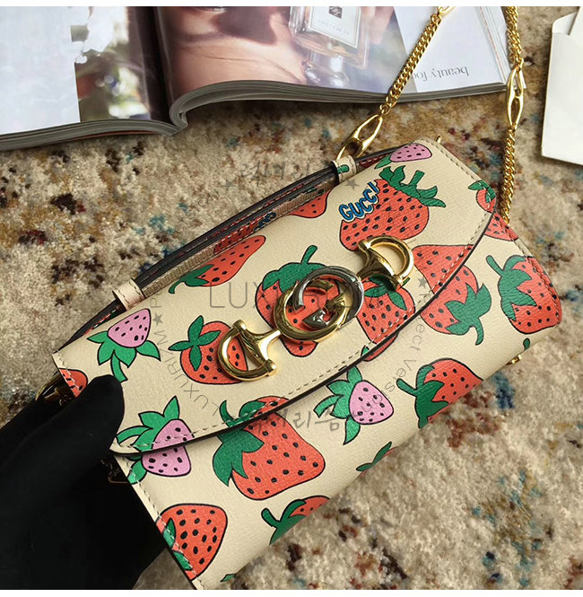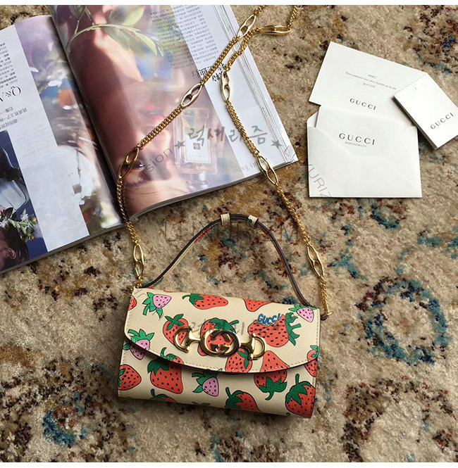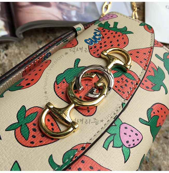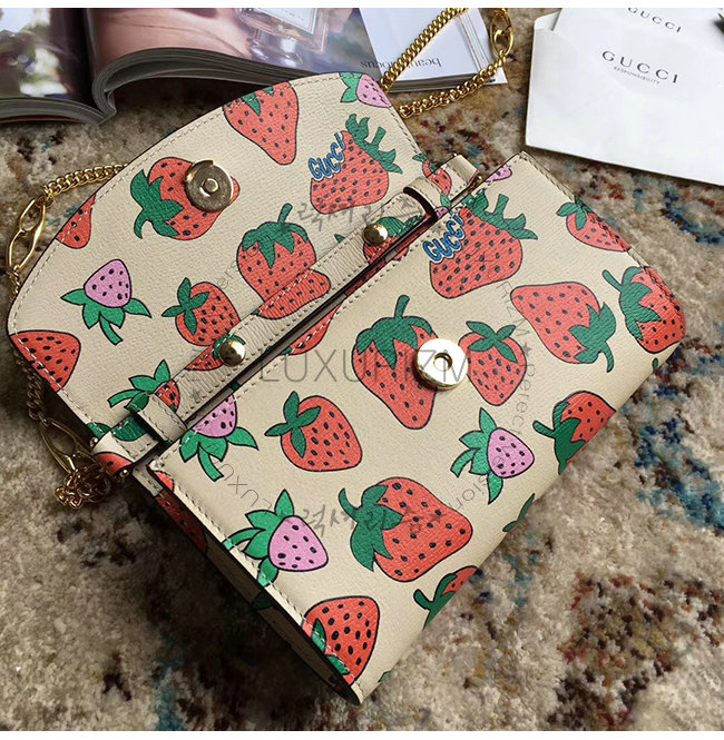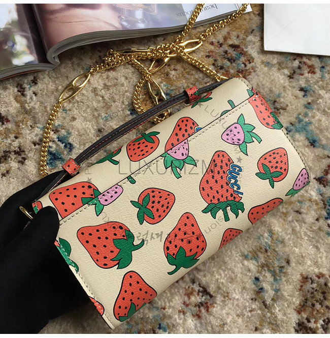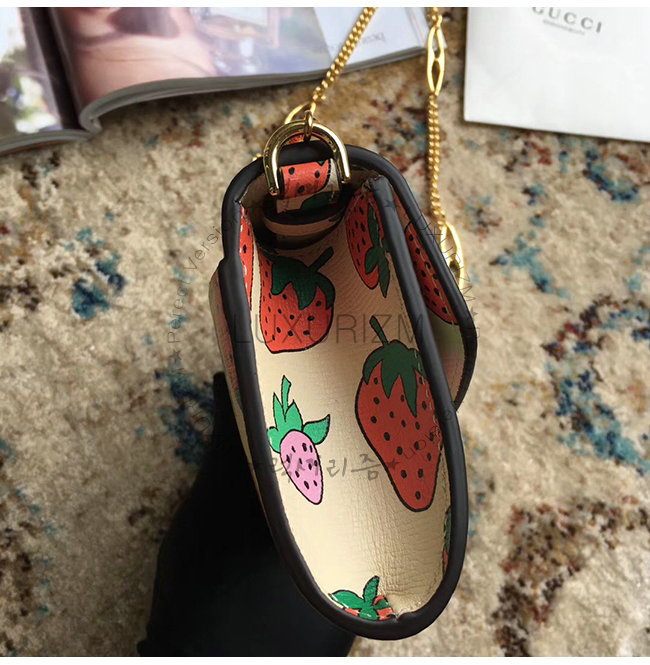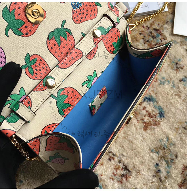 [스페셜오더]GUCCI-564718 9036 구찌 주미 아이보리 가죽 스트로베리 프린트 미니 숄더백