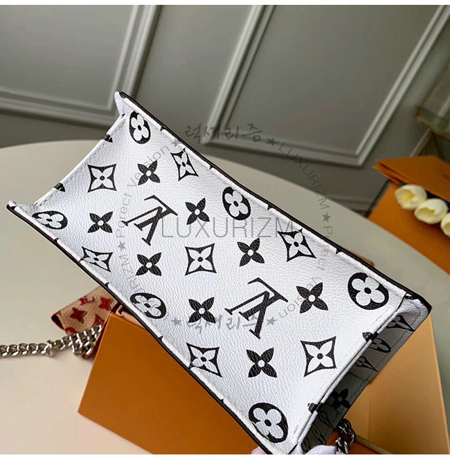 화이트 모노그램 코팅 캔버스 극세사 안감 실버 톤 금속