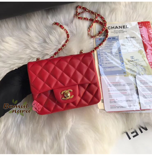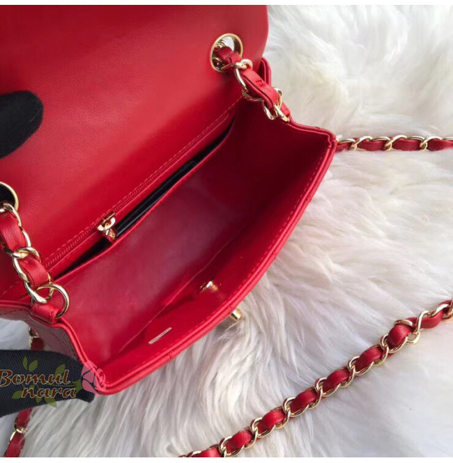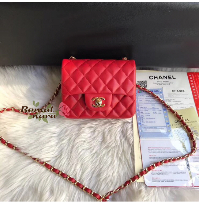 [스페셜오더]CHANEL-A35200 샤넬 레드 램스킨 골드 메탈 미니 플랩 백