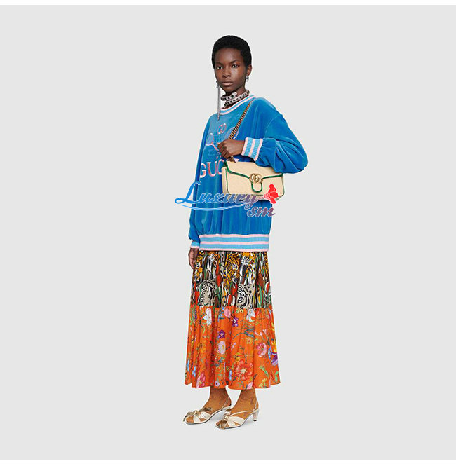 [스페셜오더]GUCCI-443497 9566 구찌 베이지 GG 마몽 스트로우 브라운/크림 스네이크 스킨 트리밍 스몰 숄더백 가격 : 340,000원