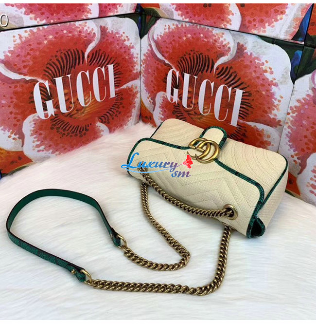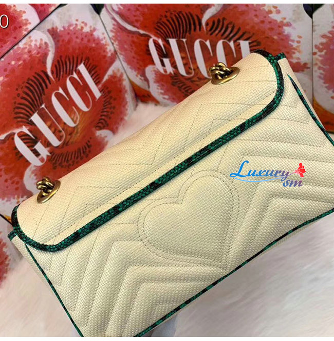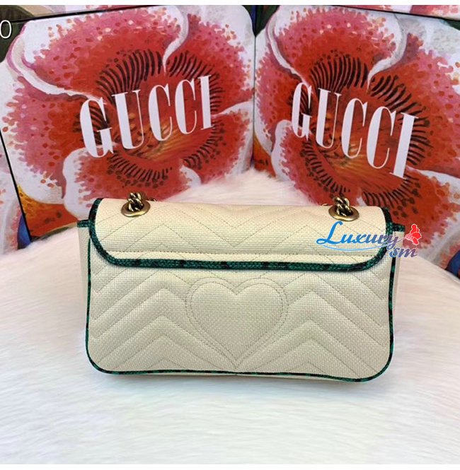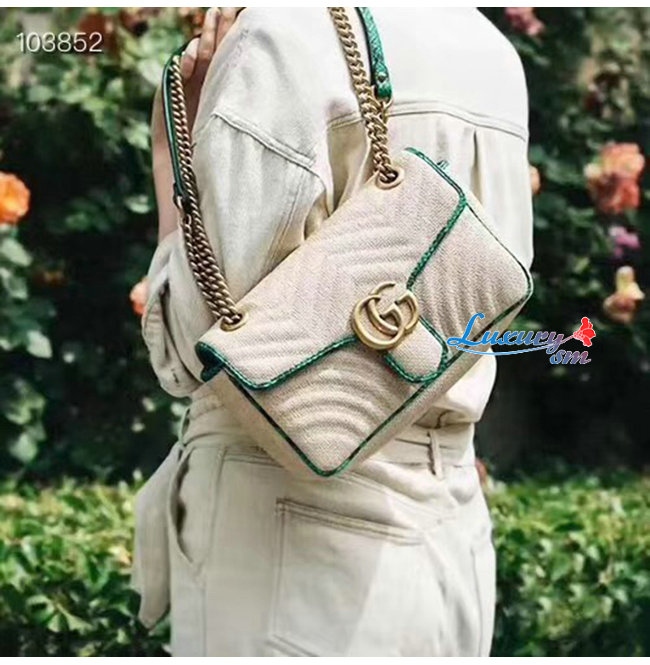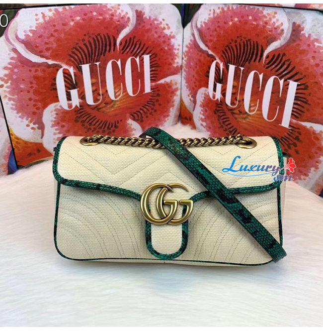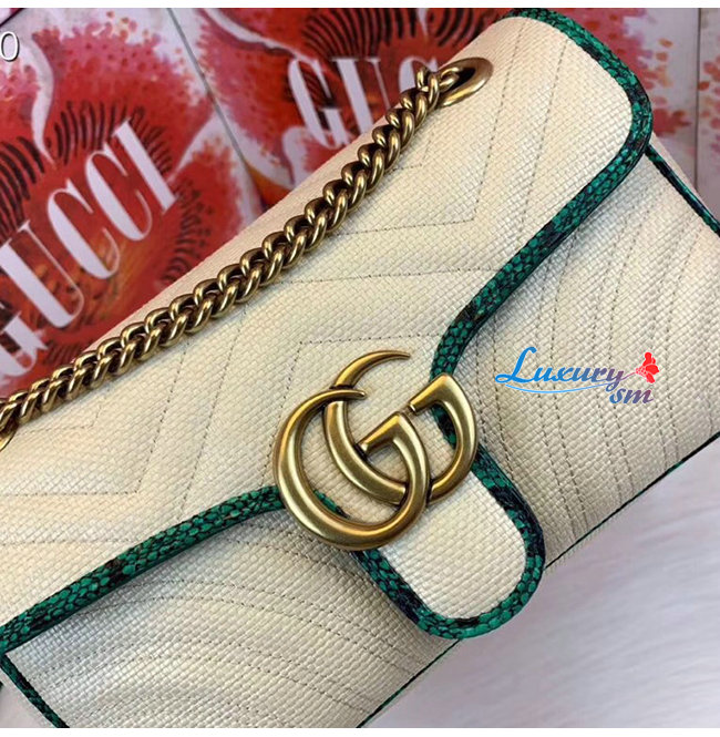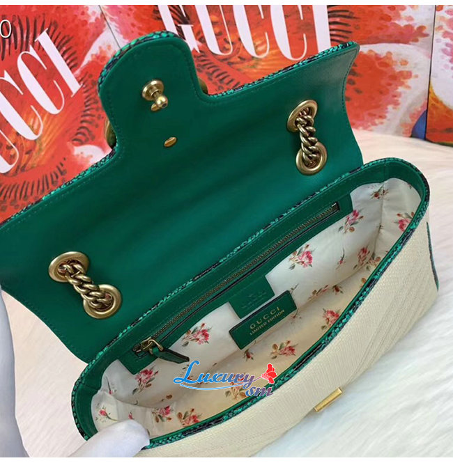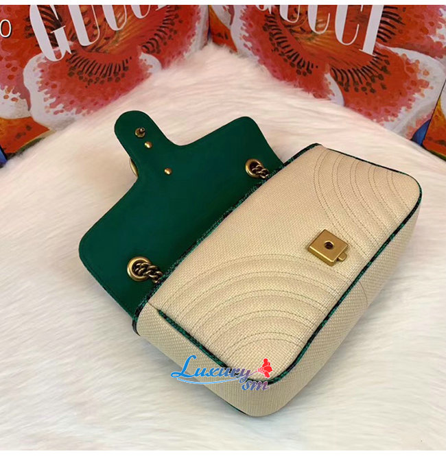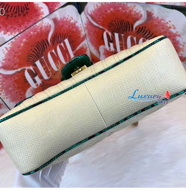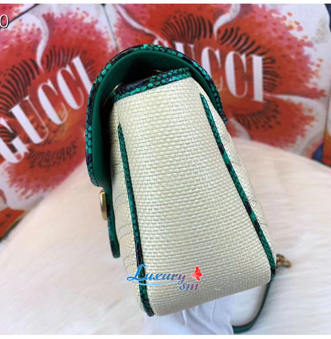 [스페셜오더]GUCCI-443497 9574 구찌 베이지 GG 마몽 스트로우 그린 스네이크 스킨 트리밍 스몰 숄더백