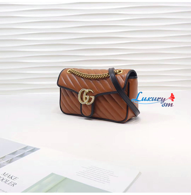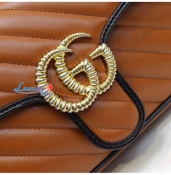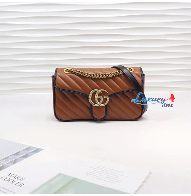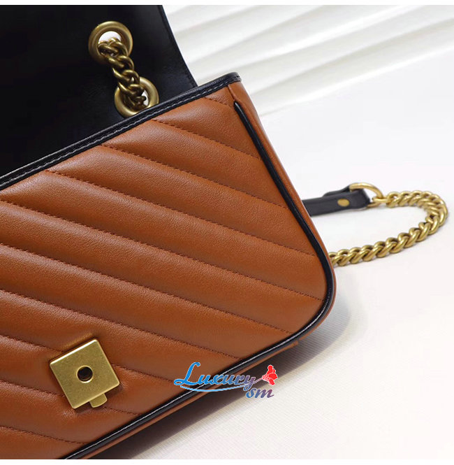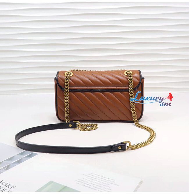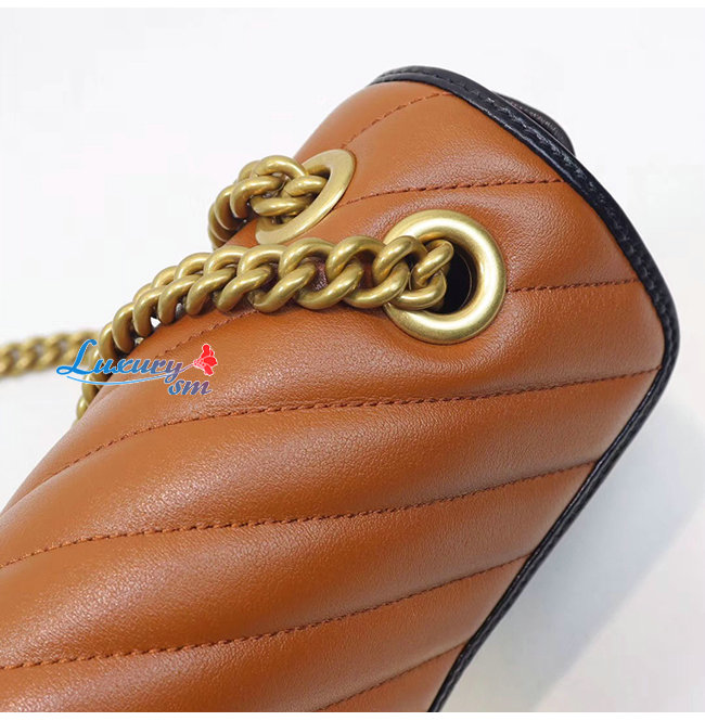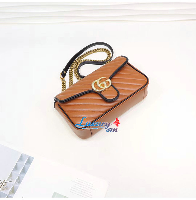 [스페셜오더]GUCCI-443497 2266 구찌 GG 마몽 코냑 사선형 마틀라세 가죽 스몰 숄더백