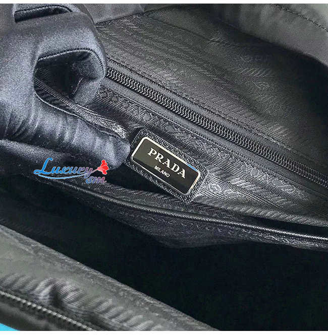 조정 가능한 패딩 처리 된 나일론 어깨끈 프라다