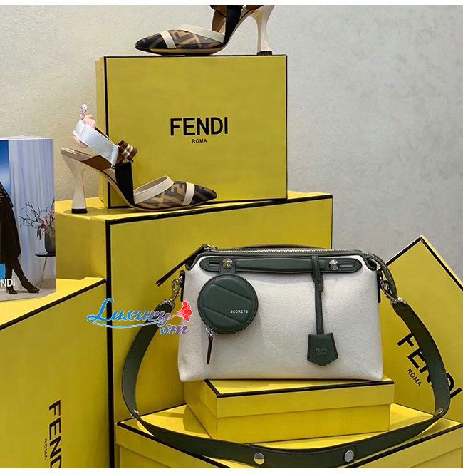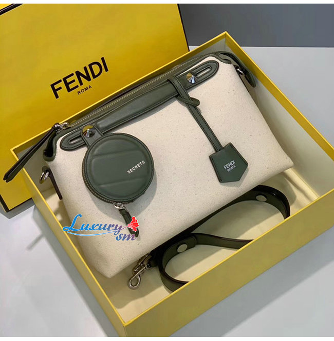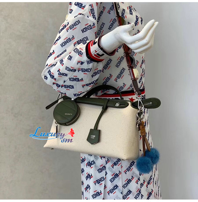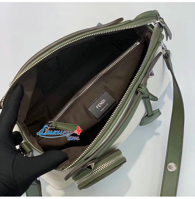 [스페셜오더]FENDI-8BL124 펜디 베이지 캔버스 그린 디테일 미디엄 바이 더 웨이 보스톤백
