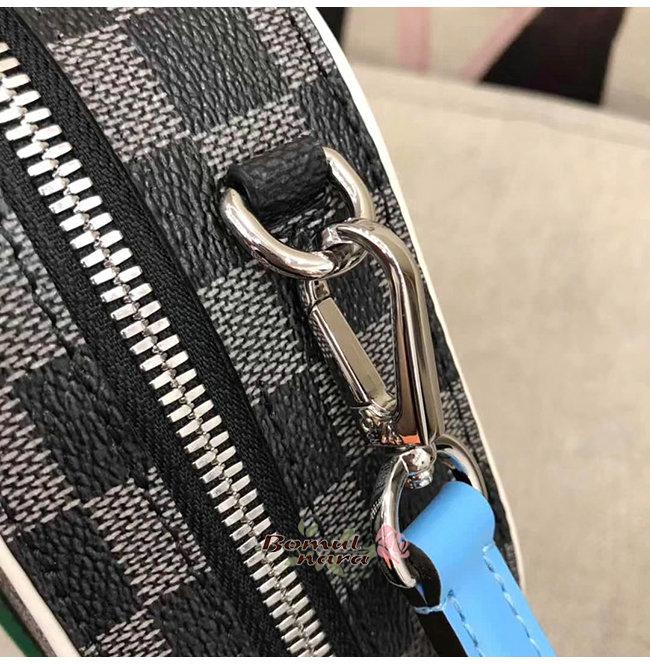 블랙&화이트 다미에 코팅 캔버스/송아지 가죽 트리밍