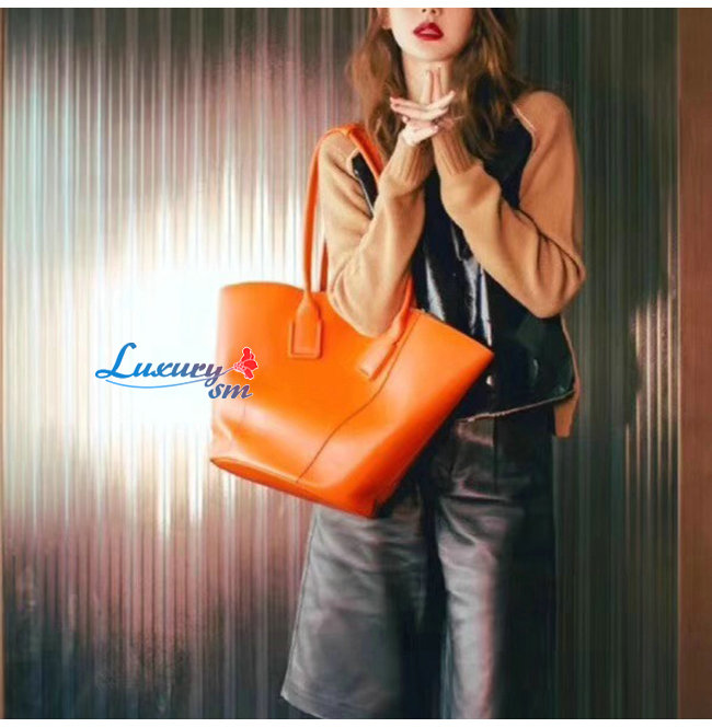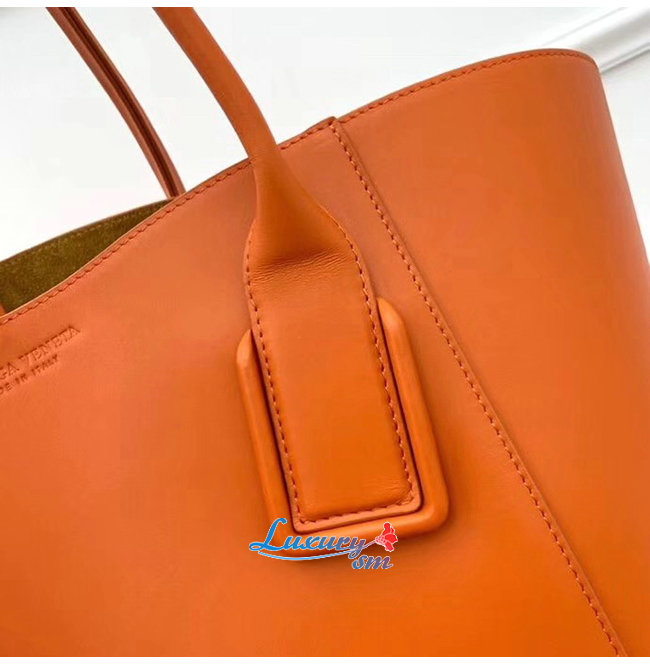[스페셜오더]BOTTEGA VENETA-576836 보테가 베네타 오렌지 카프스킨 미디엄 바스켓 토트백