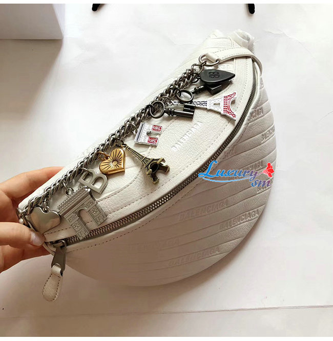 [스페셜오더]BALENCIAGA-565510 발렌시아가 화이트 염소 가죽 슈비니어 벨트백 XXS