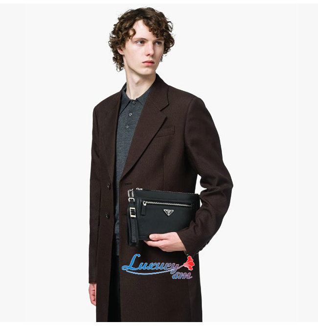지퍼 클로저 프라다 로고 라이닝 포켓 1개 가죽